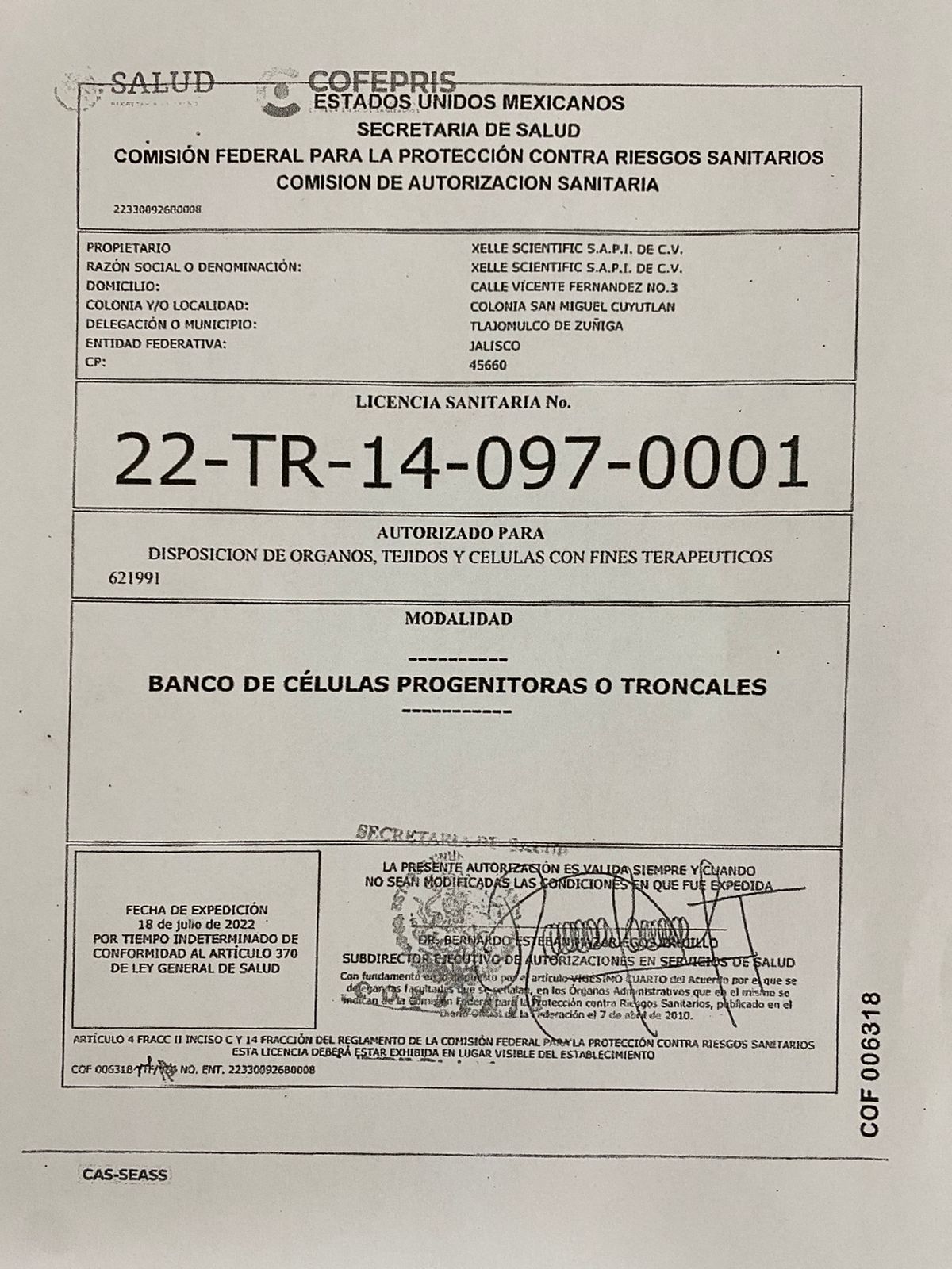 Xelle Scientific® se dedica a la investigación, desarrollo y comercialización de terapias y productos biotecnológicos basados en la capacidad regenerativa del cuerpo humano para tratar enfermedades y lesiones. Nuestros enfoques se sustentan en procesos biotecnológicos para la creación de tratamientos..